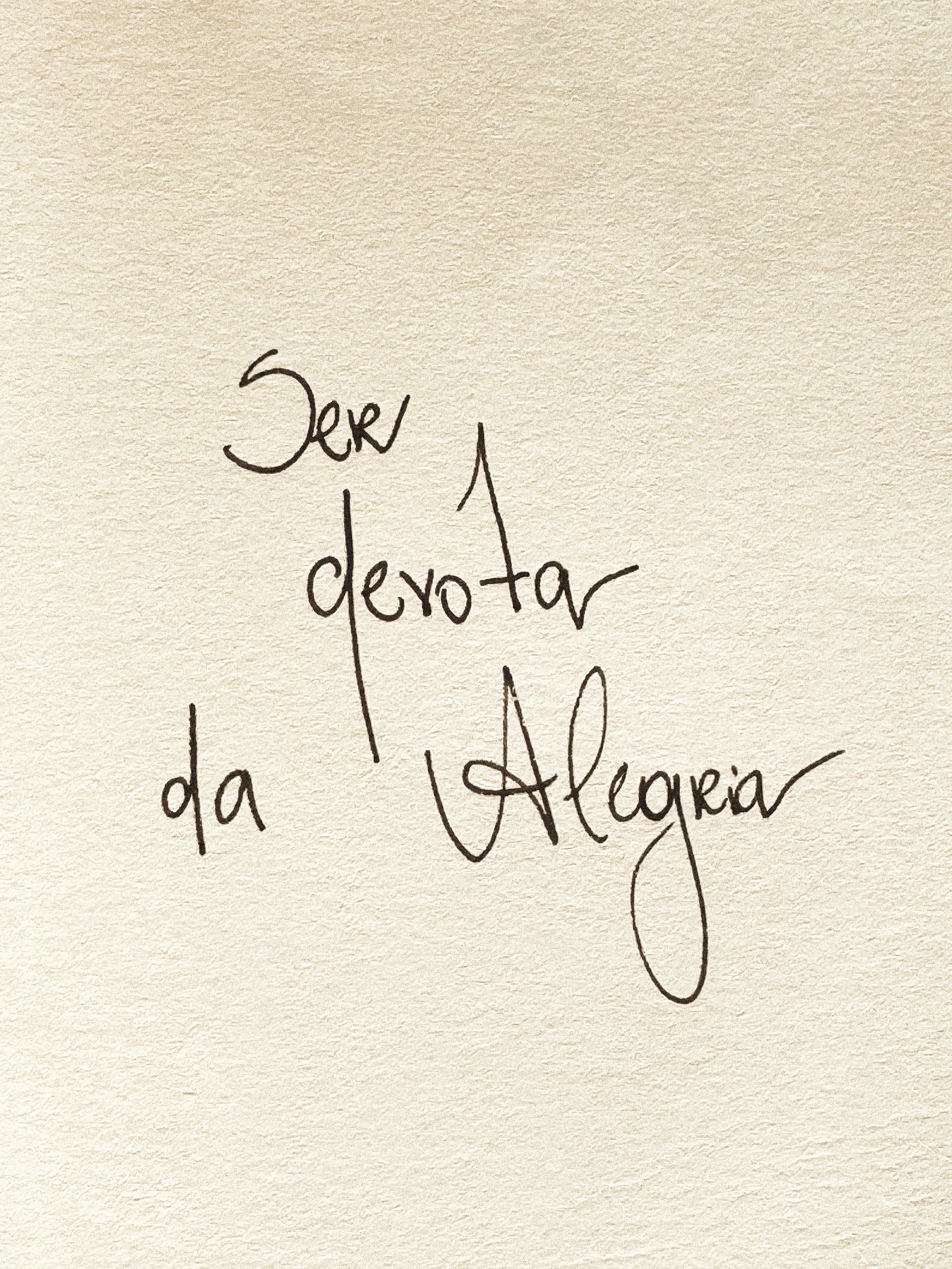 Sempre me senti filha da alegria, me considero uma pessoa de bom humor e debochada desde criança. Na adolescência, tive um período de depressão que foi uma das coisas mais tristes que já vivi: me sentia distante de mim mesma por simplesmente não sentir a vida. O oposto da alegria não é a tristeza, mas a apatia, eu diria. Dentre tantas coisas que me fortaleceram naquela época, sem dúvidas a escrita foi uma delas. Talvez por isso até os dias de hoje eu ritualizo e honro tanto esse ato: porque vejo na escrita uma força que nos ajuda a resgatar nosso estado de ânimo.